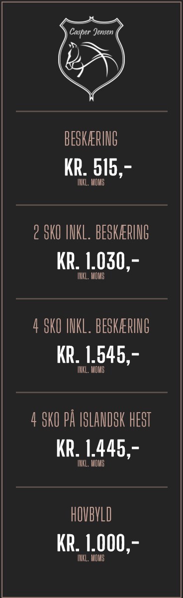 Vi udfører alle former for beslag – herunder ringsko, sygebeslag og varmeskoning. Skulle din hest tabe en sko, bestræber vi os på at få den på igen hurtigst muligt.